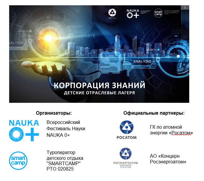 Наша миссия в процессе организации научных сезонных смен для школьников — содействие развитию науки и побуждение молодых людей учиться и посвящать свою жизнь научному творчеству и исследованиям, изобретательству. В этом году Фестиваль НАУКА 0+ и сезонные научные школы SMARTCAMP посвящены Науке и Технологиям.