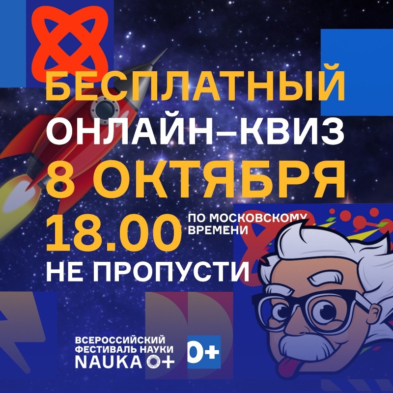 Квиз начнется 8 октября в 18:00 по московскому времени. Участникам предлагается пройти несколько туров по разным отраслям научного знания: «Освоение космоса», «Новые производственные технологии и материалы», «Энергетика будущего», «Искусственный интеллект», «Новая медицина», «Климат и экология», «Генетика», «Человек и общество». Общая продолжительность квиза — 90 минут.